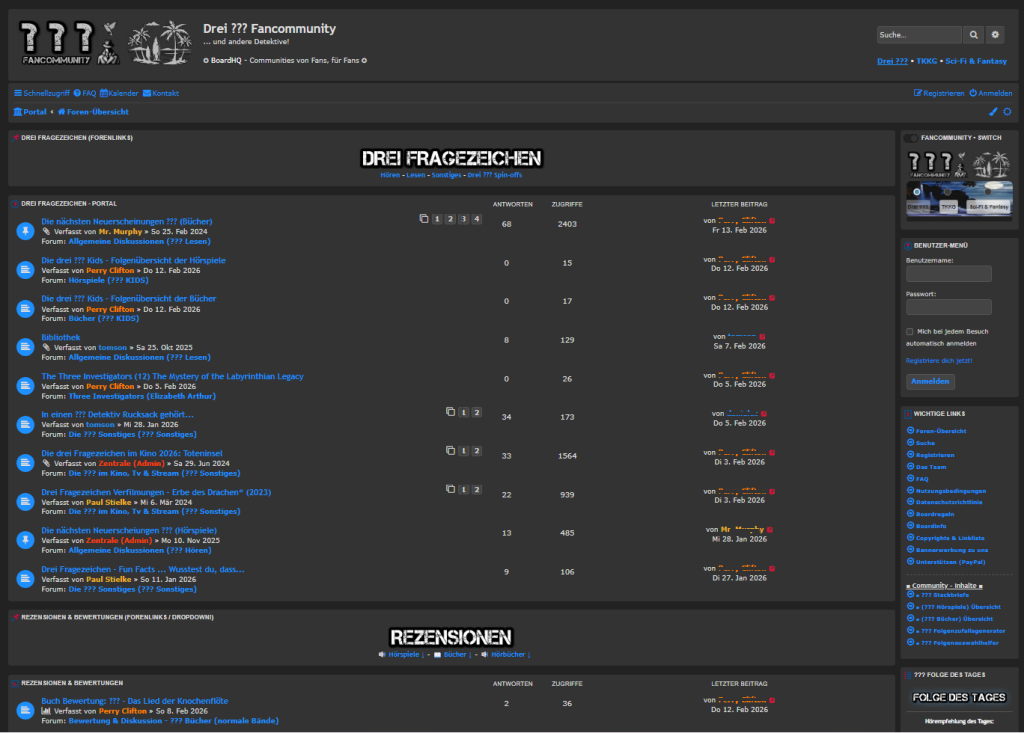 - Boardzentrale (Alle Boards in der Übersicht. News, Infos, Zugangsdaten, usw.).