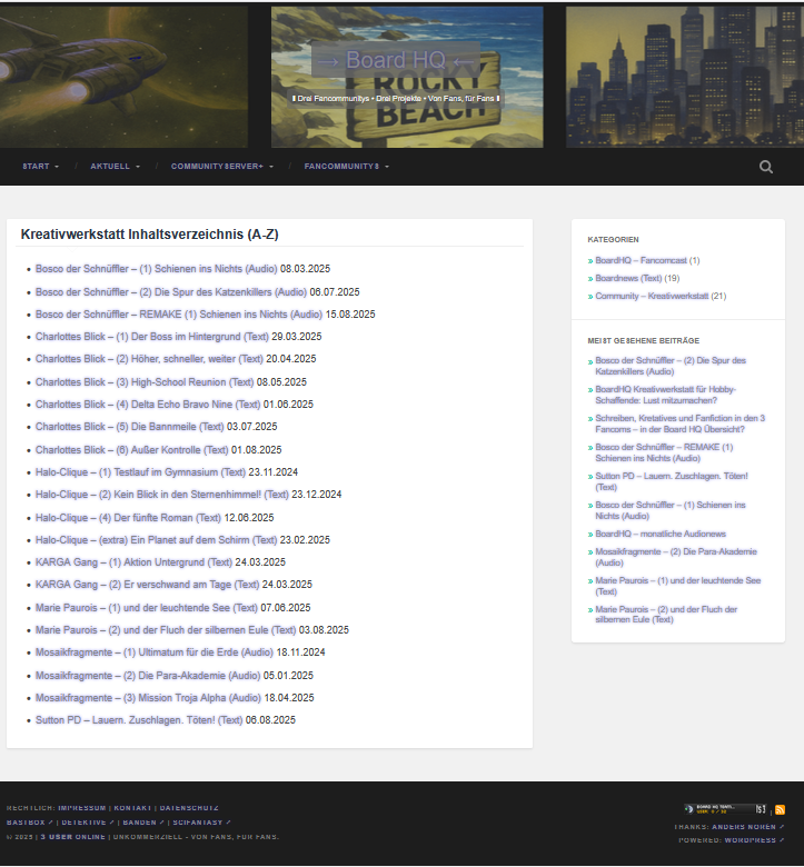 Hinweis: Die Bastbox, das BoardHQ und die drei Fancoms sind rein private, nicht-kommerzielle Projekte ohne geschäftliche Absichten.