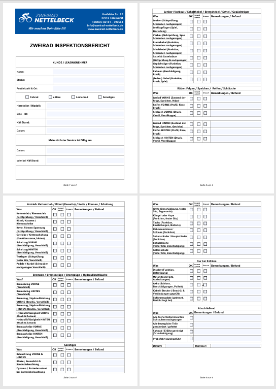 Zur ersten Version der Inspektionsberichte gibt es bereits einen Blogbeitrag aus dem Jahr 2023. Die neue Version sollte nun ebenfalls mehrere Jahre haltbar sein.: Inspektionsberichte 2 Rad Nettelbeck (2023)